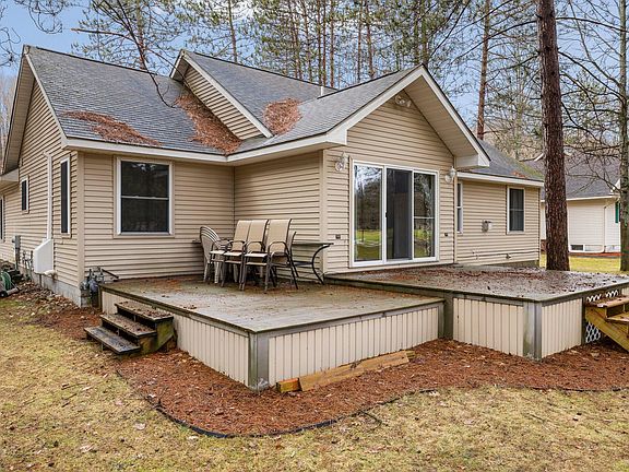 This picturesque ranch-style home on the Pines course in Michaywe features 3 bedrooms, 3 bathrooms and a private primary en suite bedroom. The fully finished basement includes two additional non-conforming bedrooms and the third bathroom, providing space for relaxation and hosting guests. Hardwood floors, vaulted ceilings and a gas fireplace add to the home's inviting atmosphere, while convenient amenities such as natural gas and cable internet enhance modern living. Outside, an irrigation system maintains the the grounds, and the property's prime location on the 5th hole of the golf course offers stunning views and access to leisure activities like cross country skiing, biking, walking and access to Opal Lake.