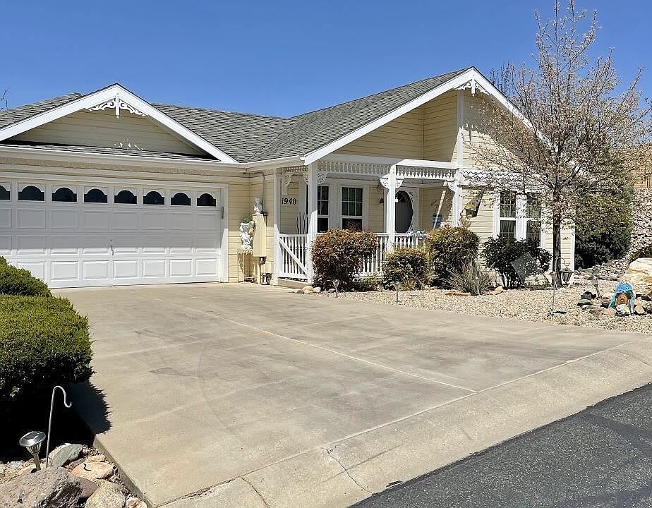 Update 7-20-22: Brand new A/C unit going in next wee! Absolutely charming and cozy home in the 55+ Victorian Estates, located near tons of shopping and dining in beautiful Prescott Valley. Enjoy a view as you exit the front door on the deck, and stream at the bottom of the hill that runs on occasion throughout the year. Nice open concept in the kitchen and dining room, with TV room accessed through french doors. Low maintenance yard in front and back, with a good amount of privacy in the back yard as no neighbors on north side of home.
