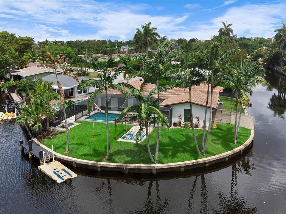 BACK ON MARKET! Make this spectacular, newly-reno'd 4-bed/2-bath (or 3-bed + office) home! With open ocean access (fixed bridges) and stunning water views, every day feels like a vacation. Relax in the screened-in pool, entertain on the sun deck, or unwind in the gazebo. The 200ft seawall with dock and floating boat/jet-ski dock is perfect for water enthusiasts. Enjoy modern comforts like new AC, new exterior paint, new hurricane doors/windows, and a stylish outdoor bar area. Inside, the renovated kitchen, modern bathrooms, and smart home features add to the allure. Embrace the tropical breeze and make this your very own secluded paradise. Don't miss this opportunity to own a piece of paradise in Oakland Park's most desirable neighborhood! 1-YR HOME WARRANTY!