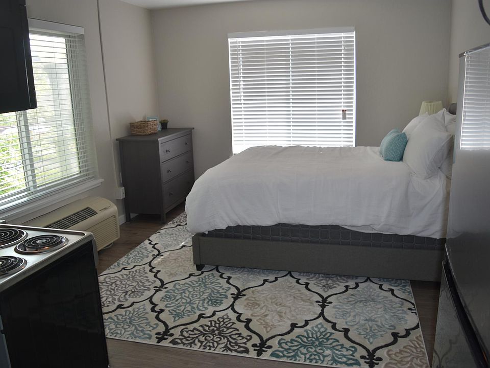 Outdoor heated poolInside hot tubBath remodelEnd corner studio unitNew kitchenLaundry facilitiesGreat light