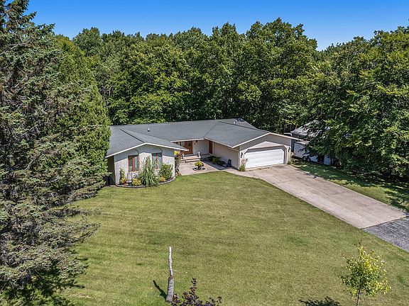 Less than 1 Mile from Lake Michigan! Located in desirable Filer Township Manistee, this well maintained 2,363 sq. ft. brick ranch style, 4 bedroom 3 bath home, with 2 wood burning fireplaces, sets on 1.5 acres with a large attached garage as well as a 24' X 52' pole barn with heat and power. Brick fireplace with wood burning stove insert in the main level family room. Sliding doors off kitchen and main floor primary suite lead to a large deck overlooking the private wooded backyard where abundant wildlife loves to gather. second fireplace in the additional unfinished space in the large walkout basement currently utilized as a rec room. Boiler heat, natural gas, highspeed internet. Schedule your tour today!