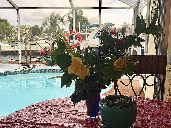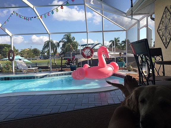 BIG BOATS WELCOME - 4 minutes to the River! Wide canal entrance from river and easy access for your yacht.This Single Family Redidence Home is available for the aggressive new resident.. The home has 3 bedrooms, 2 bath and offers plenty of space for your family. The home has beautiful maintained landscaping and a unique one of a kind shaped pool with a hot tub and water fall. The kitchen has been completely renovated with marble countertop, modern appliances, and tile floor. All bedrooms have been remodeled and guest bathroom completely redone. A new dock with 27K lb lift was installed in 2019. This is a hidden gem in SE Cape close to everything!