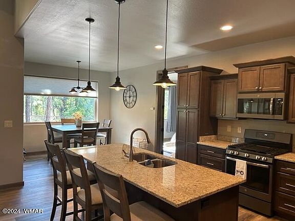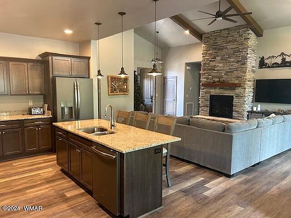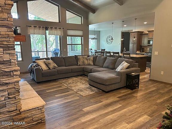 This beautiful custom 3 bedroom, 2 bath home sits on .51 acre in the tall pines. The furniture and appliances convey. It features a great room with a floor to ceiling fireplace, vaulted ceiling, custom cabinets, granite countertops, walk in closets and window coverings throughout. The high end features extend to the exterior with a metal roof, rain gutters and down spouts, paver driveway and a fenced pet enclosure. The T&G covered back deck is the perfect place to entertain or relax. The 2 car garage features cabinets and a work bench. Snow Creek has the security of a gated community with maintained walking trails throughout and is close to all the amenities the City of Show Low has to offer.