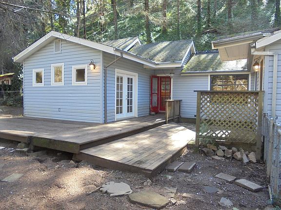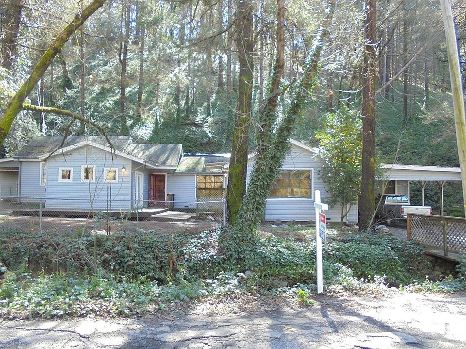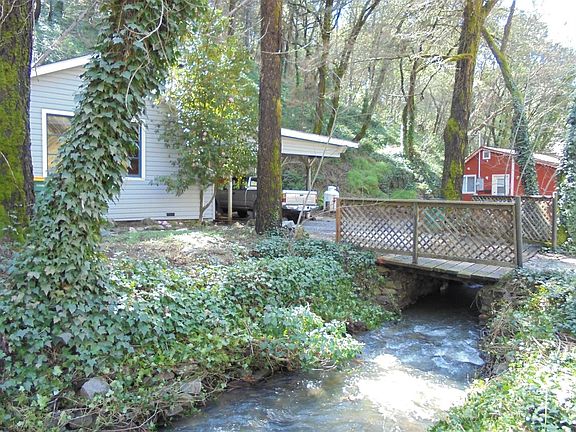 LIVE IN ONE & RENT THE OTHER, OR VRBO THE OTHER. Ask your accountant about income property tax deductions! Both homes have frontage on year round creek. 1940's Storybook, 1800 sq. ft. single story home features large living room w/fireplace, wood floors, formal dining, kitchen w/pellet stove & tile flooring, laundry, two baths, 2 bedrooms, w/2 dens(possible bdrms.),lge deck. Secluded 693 sq. ft. guest house is 1+1+1 carport. El Dorado walking trail to downtown Placerville is across the street.
