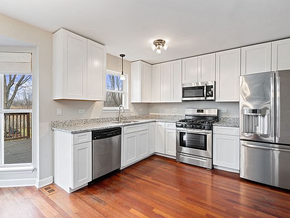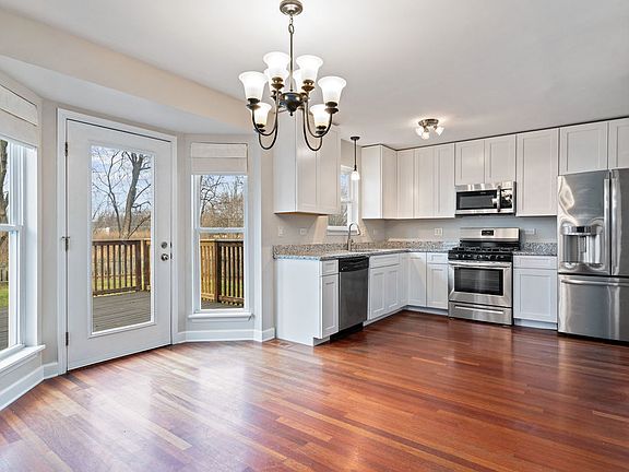 Weslake Subdivision home in Plainfield School District on premium lot just minutes to I-55 features 3 bedrooms, 1 1/2 remodeled baths with finished basement, white kitchen with granite countertops and stainless steel higher-end appliances and 42' cabinets, dinette area with bay window, built-in bookcase, walk-in closets in each bedroom, 2-car attached garage, massive 30x15 deck off dining room and fenced yard and private/wooded/sunset view. Brazilian cherry floors throughout entire 1st and 2nd level, polished porcelain in 2nd level bathroom with dual sinks, and updated lighting fixtures throughout. 1st floor laundry room off kitchen with washer/dryer; all appliances included. Amenities include club house with exercise gym, outdoor pool, parks, playgrounds, fishing lakes, paddle boats, bike trails, miniature golf, tennis, basketball, volleyball courts and more. Freshly painted and move-in ready. Professional yard maintenance is an optional add-on. $50 application fee and background check required for all applicants over age 18 living in the home. Pets negotiable. Lease can be 1+ years