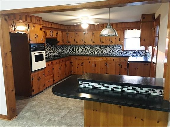 Come see this cute home with many updates in bath rooms and kitchen. Large bedroom upstairs has a walk-in closet, hardwood floors and vinyl replacement windows. First floor master bedroom with hardwood floors. Large open kitchen with Knotty Pine cabinets. Newer electric cooktop and stylish tile back splash with a double corner stainless steel sink and corner windows. There is a very nice sized family room with fireplace and double windows that look over the backyard and sunsets across the park behind the house. There is a side porch as well as a front porch and carport. A storage/workshop room is under the carport as well.