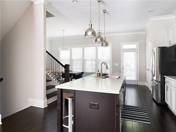 End unit townhome 2/3/1 with a walkout at Townsend at Toco Hills! The Arlington floorplan has a flex space located on the terrace level. Use it as an office, den, media, exercise or an extra bedroom. It has a full bath on the same floor. The main floor has all the modern amenities everyone is looking in an open concept floorplan. The living room flows into the kitchen to the dining room and out to the private deck that is surrounded by greenery. The living room is bathed in natural sunlight with custom bookshelves on either side of the fireplace with stone wall. The large kitchen has quartz countertops, espresso and white cabinets, 5 burner gas cooktop, and all stainless steel appliances with microwave oven and built in wall oven. The generous pantry can hold additional small kitchen appliances and all your snacks. Plenty of seating at the kitchen island and room for meal prep. Rounded wall corners at complete the architectural touches to thick baseboards, crown molding and high ceilings. The primary suite is exactly that - a generous sized suite to accommodate any size bed along with dressers and still room for a sitting area. The ensuite bath boats a double vanity, water closet and a shower with multiple shower heads and frameless shower door. The closet has plenty of room for your inner fashionista finds. The guest bedroom is across the hall so it is a perfect roommate plan with its own attached ensuite too. The laundry room - yes an actual room, is located on this floor too. The 2 car garage has plenty of space for additional storage. Location, location, location with convenience to Toco Hills with a Publix and a Kroger with lots of dining and shopping options. Ease of commute to CHOA, Emory University and the VA Hospital. Priced to sell!