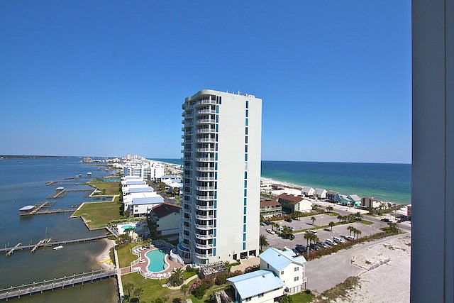 Words cannot describe the breathtaking views of both the Gulf and the Lagoon from this spacious waterfront condo. This 13th floor paradise is located on prestigious West Beach Blvd. Floor to ceiling glass and over 1800 square feet of tranquil waterfront living. Amazing sunsets that want you to reach out and touch them. This is a low density complex (only 32 units). You'll never have a problem getting a parking space or waiting for an elevator. Private balcony and private entrance to your unit. First come, first serve boat slips. Private guaranteed beach boardwalk, lagoon pier for fishing, 2 pools, and workout facility. You'll notice the pride of ownership in the decor and excellent condition of this condo. Sold completely furnished.