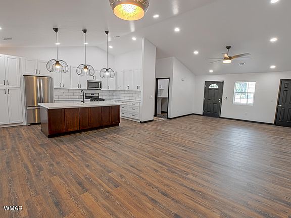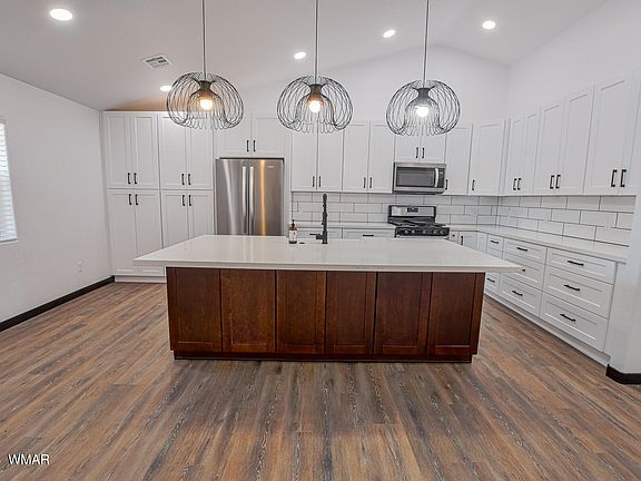 Fully Remodeled single level 1883 sq ft 3/2/2 with No HOA in Show Low. No details were overlooked. New vinyl plank waterproof flooring, all new recessed lighting and fixtures, electrical plugs and outlets, quartz counters throughout, soft close cabinetry, paver deck extension and so much more! Please see attached list for all of the upgrades completed. Owners are both licensed real estate agents Arizona/Utah.