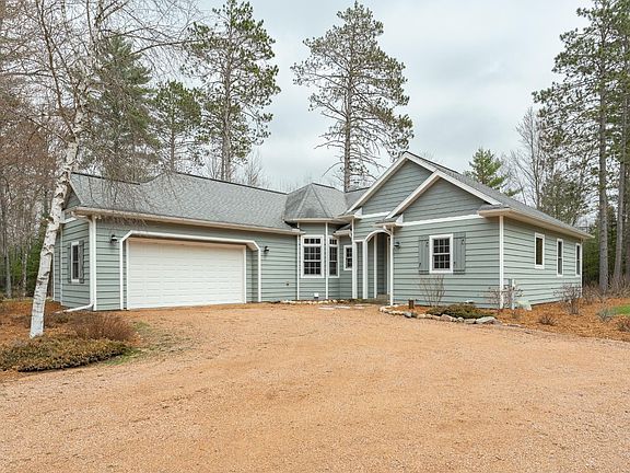 3 bedroom, 2 full bath home sitting on 1.75 wooded acres close to all the amenities and recreation Eagle River has to offer. Beautiful dine in kitchen with cherry cabinets, hickory flooring, granite counter tops, SS appliances, and wine cooler. Spacious living room with field stone fireplace, cathedral ceilings and doors leading out to the covered patio. Primary bedroom has tray ceilings, his and her vanities and large walk-in closet. Custom trim work for all doors and windows. Interior has been totally repainted and new carpeting throughout. Full unfinished basement ready for you to add additional living space. Two car attached garage and landscaped yard. This one is a must see!