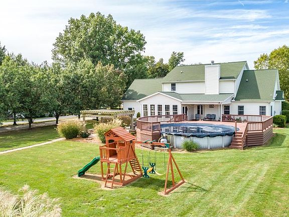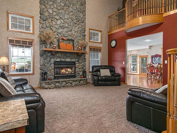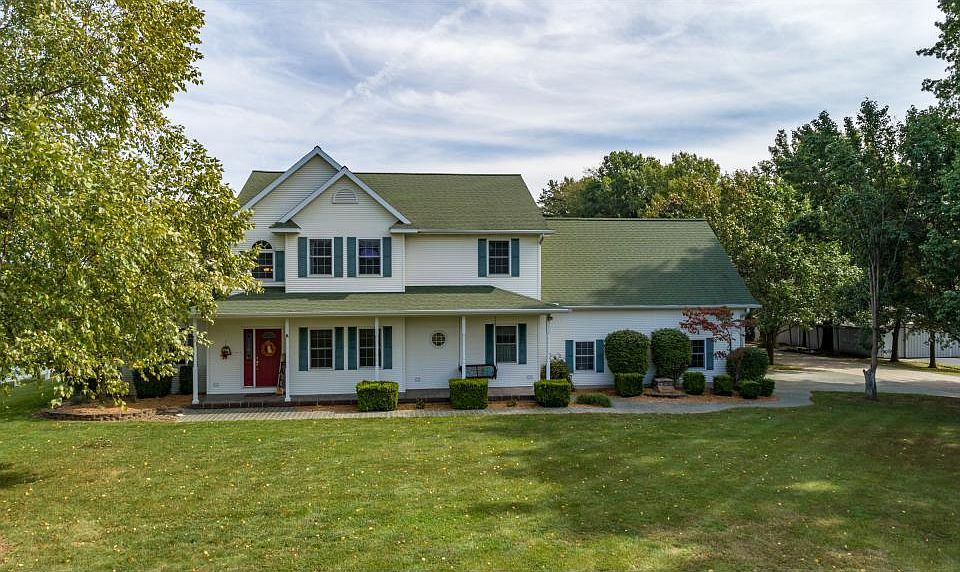 Looking for a home in the country or on the edge of town? This house is perfect. Just minutes from town and the lake. Large modern kitchen with matching stainless steel appliances, center island , oak kitchen cabinets and open kitchen dining area. Kitchen appliances stay with the home. Living room has cathedral ceilings and a stone gas fireplace. Main floor master bedroom with large walk in closet and master bath with walk in shower and Jacuzzi tub. Main floor laundry room. Some hardwood flooring. 2 Bedrooms upstairs with large walk in closets . Large play room that could be an additional bedroom . Full basement with a bedroom, bathroom , family / game room and lots of storage. Pool table stays with the home. Above ground swimming pool & deck. 8.52 acres total and 7.52 acres zoned agricultural. 30 x 30 shed and 30 x 48 barn along with a smaller storage shed and potting shed. Some timber and trails in your back yard. Additional parcel numbers 18-14-08-126-009, 18-14-05-451-007, & 18-14-05-376-005 included.