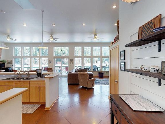 Absolutely stunning contemporary ranch style Waterfront home that provides a serene setting to watch seals, otters, eagles, fish and whales from your expansive decks that surround the home. This beautiful home features an open concept floor plan with 12 foot ceilings throughout, ceiling fans, skylights, an expansive window package, colored cement floors with in floor radiant heating, solid core doors, a pellet stove and so much more! More pictures are coming soon! Please check out the visual tour! This one won't last so call today to arrange your private showing.