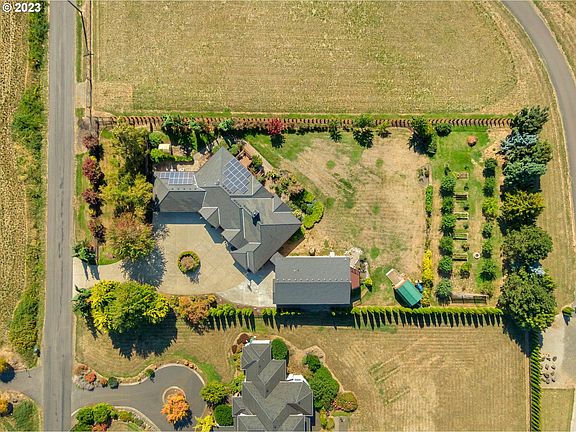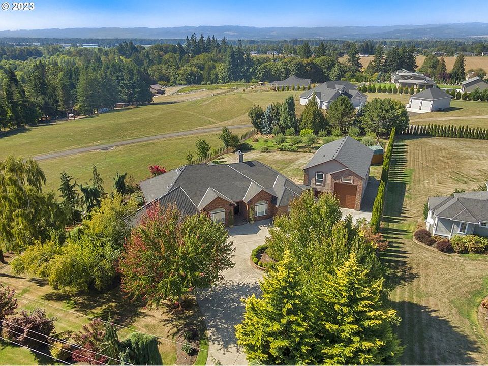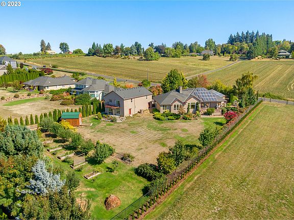 Incredible single-level home nestled on a picturesque 1 acre in Mettler Manor w/ large shop to store your toys. This gorgeous home has been updated with over $200k in upgrades & custom features and is move-in ready. The home boasts tall ceilings throughout, engineered hardwood floors, stone fireplace in great room with built-ins, gourmet kitchen w/custom 6'X 11' island, Quartzite countertops, built-in Professional series refrigerator, 6 burner gas cooktop, double ovens, SS appliances, microwave, pantry and AC. The primary bathroom has a soak tub amazing views of the territory, large walk-in shower and a walk-in closet with additional laundry hook-ups. This home also offers a propane backup home generator, 32 panel solar system, Tesla charging unit, 220v in the garage plus additional 220v in oversized finished 50x30 shop. The almost 1000 sq ft of multi-purpose/bonus space above the shop comes furnished and has a 3/4 bathroom. The beautiful fenced backyard has over 10 mature fruit trees in the orchard, multiple assortment of berry plants and raised garden beds w/irrigation, there's also a shed for storing tools and small machinery also fully fenced and a small greenhouse for the avid gardener. Come see this home and sit on the deck with your glass of wine from the nearby Confluence Winery and enjoy the gorgeous sunsets and views of the Oregon hills and countryside while still only being a few minutes from the freeway and other amenities.