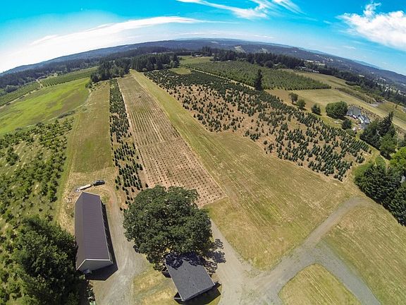 Hobby Farm on 50 Acres. Large home - 3 bedrooms and office/4th bedroom on main level, downstairs is a huge family room/Guest Qtrs. Storage through out. Kitchen is stainless steel counters, newly painted newer carpet throughout. Fireplace in Living room. 7 bay 96' x 36' Shop with 12' doors, gravel. Hangar has 2 levels for 2 planes. $ potential! Income good, lifestyle of country living. Not too far from Portland. Private airport #7OR9