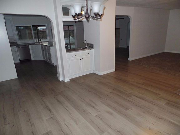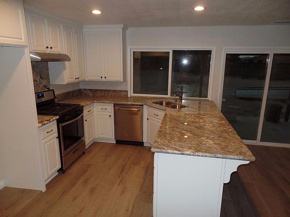 Beautifully remodeled house in Apple Valley close to the A.V. golf course. This home features new flooring, granite, tile tub surrounds, interior and exterior paint, new baseboard, interior doors, new heating + AC, new applainces, new faucet fixtures, ceiling fans, and more. Giant kitchen has new cabinets with stainless applainces and a giant granite breakfast bar. The kitchen opens up to the living room with tile fireplace and wood hearth. Through the kitchen you go to the formal dining area which has a wet bar with new cabinets and undermount lighting. The master bedroom is huge and the on suite bath includes double sinks and a tile tub surround. All rooms have fans and new interior doors. The windows are all LOW-E high efficiency. This one is easy to see, just call your agent.