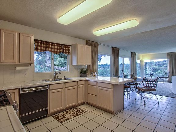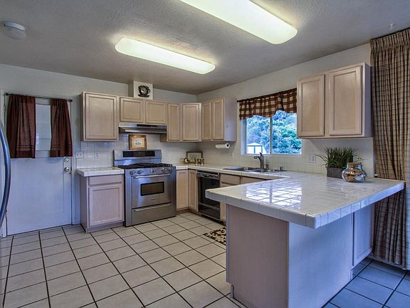 You will feel like you are on top of the world with all the beautiful canyon views from the large living room windows. Nice open floor plan with kitchen overlooking dining area and living room. Lovely wall brick fireplace for those cozy nights sitting by the wood burning fire. All appliances included. Master bedroom has own master bath. Covered Breezeway between house and separate laundry room with it's own storage room you can use as office too! Large 2 car garage with one garage door in back for drive through to backyard to park your toys. Newer Roof. Garage has tool bench and lots of storage. Backyard set up for entertaining with outdoor grill and wash basin. Large storage barn for your tools or hobby room. It feels like a real country home to enjoy sitting in backyard looking at the stars.