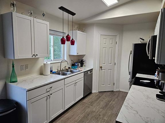 Available 2 July. Stunning uninterrupted mountain views! Open floor plan with 2 living areas, vaulted ceilings, and cozy fireplace. Beautiful established landscaping, access to trails for the outdoors enthusiast and a quick commute to JBER, Anchorage, schools and shopping. Green belt behind the house. Next to Alpenglow Elementary. $100 monthly pet rent. Large or small dogs upon approval. No smoking or vaping. Lease duration 12 months +. Tours will be considered for approved applications only. All communication will be via Zillow. Tenant pays for all utilities. Lease for at least 1 year. Negotiable for up to 4 years. Renter is responsible for utilities. Serious inquires only!