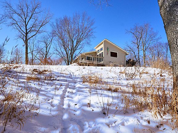 This unique walkout rambler is nestled on 2.5 wooded acres overlooking serene wildlife ponds, offering breathtaking views and an abundance of natural light. The vaulted great room, featuring a stunning tongue-and-groove ceiling, creates a warm and inviting atmosphere. The main floor boasts a spacious primary bedroom with a walk-in closet and a private bath has direct access to a private deck, perfect for enjoying the peaceful surroundings. A beautiful new concrete driveway leads to an oversized two-car garage and a storage shed, providing ample space for storage and parking. The lower level includes a third bedroom, additional living space, and another deck, allowing for seamless indoor-outdoor living in this tranquil retreat.