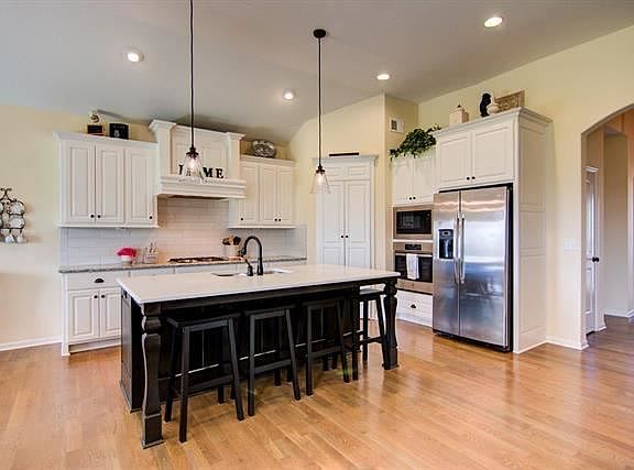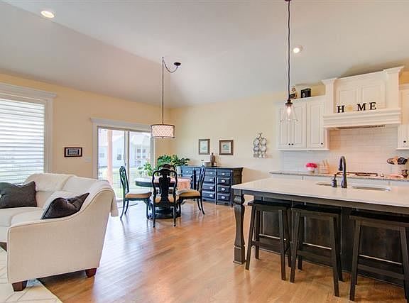 Beautiful Reverse 1.5 Story. NEARLY NEW & MOVE-IN READY with tons of upgrades and improvements! Open floor plan with high ceilings, beautiful hardwood floors, & pocket office in main area. Kitchen features large island with quartz/granite counters, stainless steel appliances, gas cook top and walk-in pantry. Spacious master suite with soaker tub, large shower & 2 walk-in closets. 2nd bedroom on main level. Finished lower level w/large rec room, 2 bedrooms, full bathroom and plenty of space for storage. New rock landscaping. In ground sprinkler system, covered patio, fenced backyard, plantation shutters and blinds throughout. Newer front storm door. Water powered sump pump backup system. Neighborhood pool and playground!