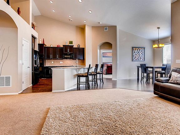 Step into this open floorplan ranch home showcasing 18 foot vaulted ceilings in the great room, separate dining room, and kitchen with a breakfast nook. The main floor also has a guest bedroom or office, a dining room and a butler's pantry with an area to put shoes and coats off the garage. The main-floor master bedroom has vaulted ceilings, a nice bay window looking to the backyard, a 5 piece bath, and a convenient pass through for laundry. This ranch home has a finished basement with 3 more bedrooms, a full bathroom and a family room with a built in entertainment center, plus ample storage. An oversized three car wide garage, with an exterior door to the lower maintenance back yard--quick grass cutting. Acclaimed Douglas County Schools, walking distance to the Cherry Creek Trail and grocery shopping make this home perfect for you!