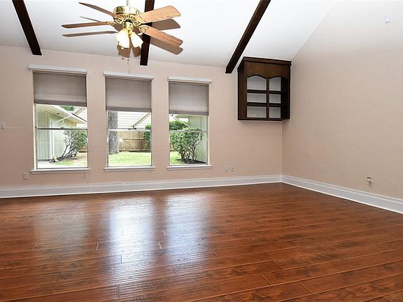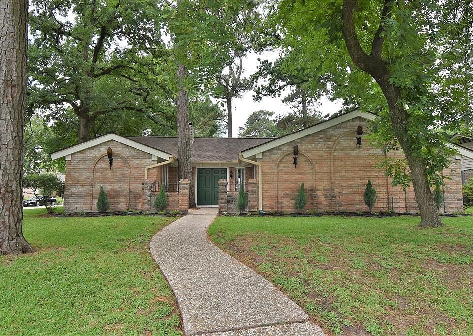 HOME HAS NEVER FLOODED! New exterior paint May 2018. AC replaced May 2017 with 4 ton 16 SEER unit. Hand scraped laminate flooring in den, formal dining and hallway. Tiled kitchen, baths, and entry. New cook top May 2018. Ceiling fans and cable connections in all bedrooms, kitchen, den and master bath. Fireplace with gas logs. New lighting fixtures in master bath. Updated secondary bath. New double pane sliding glass doors in master bedroom. New exterior door off den. 1/2 bath off large utility room. Automatic garage door openers, floored attic in garage. Automatic sprinkler system front and side yards. Easy walk to community pool, tennis courts and gym facility. Convenient to shopping, restaurants, theater and hardware stores. Easy access to I-45, Hardy Tollroad and 99.