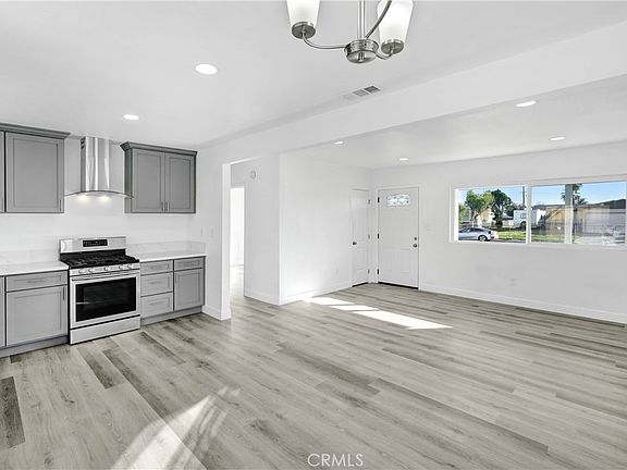 Turnkey Rialto Home. Completely refurbished. Remodeled kitchen with new cabinets and granite countertops. Tile flooring in the kitchen and wood laminate flooring throughout the house. Remodeled bathrooms with tile flooring. New vinyl windows. Fresh interior paint and new exterior stucco. Central A/C. Easy freeway access and near schools and parks.