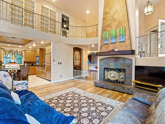 A show-stopper of a home in one of the very best locations in The Ridge In Hiwan. Near the end of the Ridge's most sought after lanes and backing a large, private open space. It's your reward of the finer things in life. Soaring ceilings, intricate craftsmanship throughout, thoughtful design elements and intelligent architecture come together with amazing detail in custom wall textures and paint in this incredible property. An entertainers delight with refined formal spaces including a comfortable living room with an amazing, carved stone fireplace, while the dining room's tray ceiling and uniquely Colorado chandelier will compete to be the focal point. Working from home is a special treat in a luxurious well appointed office with extensive builtins and even a see through fireplace. The family room is graced with 14 large windows looking across the waterfall into open space and the huge fireplace wall reaches to the top of the high vaults, with reclaimed wood floors and access to the back patio this is the place to be! A built in sound system pipes music in for every occasion. It's open to the kitchen which itself is a well designed use of extensive space. Complete with a large breakfast nook and the ideal work triangle it simply works for all occasions. 3 secondary bedrooms upstairs each have their own private full bath while the exquisite master suite has its own floor for the ultimate in privacy and space. The lower level walkout is a dream getaway with plenty of room for a theatre room, gaming, yoga studio, cycling bar, pingpong, pool you name it. Outside the home is built to last and look good doing it with stone and stucco construction and concrete tile roof. The back yard is highlighted by a beautiful multi-tier waterfall and extensive patios. Don't miss the hideaway workshop accessed from the side load three car garage. New boiler for in floor heat in 2018.
