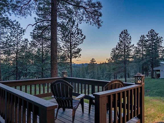 Purple Mountains Majesty Estate in the San Juan National Forest. Located feet away from National Forest access is a unique offering within the gated subdivision of Deer Valley Estates. Tucked into the very end of the subdivision on nearly four acres, this stunning mountain retreat has breathtaking views and endless valley vistas. This two-bedroom, two-bathroom house has been recently updated, has all new appliances, and thoroughly brought to life, interior and exterior. Live seamlessly indoors to the outdoors with ample indoor natural light streaming through windows and easy access to outdoor entertaining on various patios and decks. Take in the serenity and wilderness surroundings from the open living room, dining room, and kitchen with a seamless and efficient floorpan. A spacious downstairs bedroom also provides access to a private outdoor deck, stamped concrete landscape trail, and a custom swinging bench beneath the towering pines. Upstairs leads to a spacious loft area that lends itself to perfect flex space for additional sleeping, office area, or space to unwind and take in more views. The spa-like primary suite includes and upgraded ensuite bathroom with unique finishes and character. Equipped with air conditioning for those warm summer months, and a gas stove heater in the family room that efficiently heats the whole house, this home lives efficiently and elegantly in all seasons. The property is partially fenced with a one acre perimeter fence. The barn is complete with electricity and ready for horses, including separate hay and tack storage. The property backs up to 12,000 acres of San Juan National Forest that you can make your recreational paradise for riding horses, ATV's, hiking, biking all in your literal backyard. Fiber has recently been installed for the community. Roads are impeccably maintained year round. Deer Valley Estates is located six miles east of Bayfield. Durango is located 25 miles to the west, and Pagosa Springs is 35 miles to the east. Welcome to base camp for all adventures!