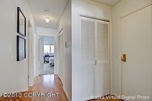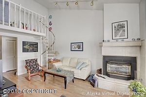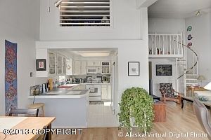 Beautiful top SE unit overlooking majestic Cheney Lake. Sunny open florplan w/unobstructed views of mntns and lake from lvg, din, kit & bdrm. Vaulted ceilings w/loft. Lots of windows. Deck off living room, laminate flooring, gas DV fireplace, cement construction for quiet living. Washer/Dryer and Refrigerator stay. Large garage w/big storage unit and extra parking space.