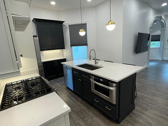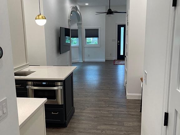 Remodeled first-floor condoStainless steel appliancesGourmet kitchenPlank flooringBuilt-ins and additional storageCustom glassCustom cabinetry