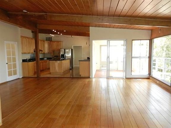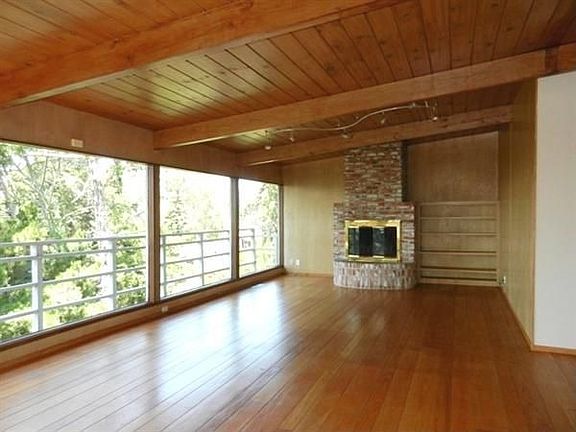 Contemporary home with open floor plan. Beamed ceilings. Fireplace in living room, enclosed sun porch. Updated kitchen with island & tile flooring. Stainless steel appliances. Lots of windows & natural light. Master bedroom has built-in closet. Freshly pa