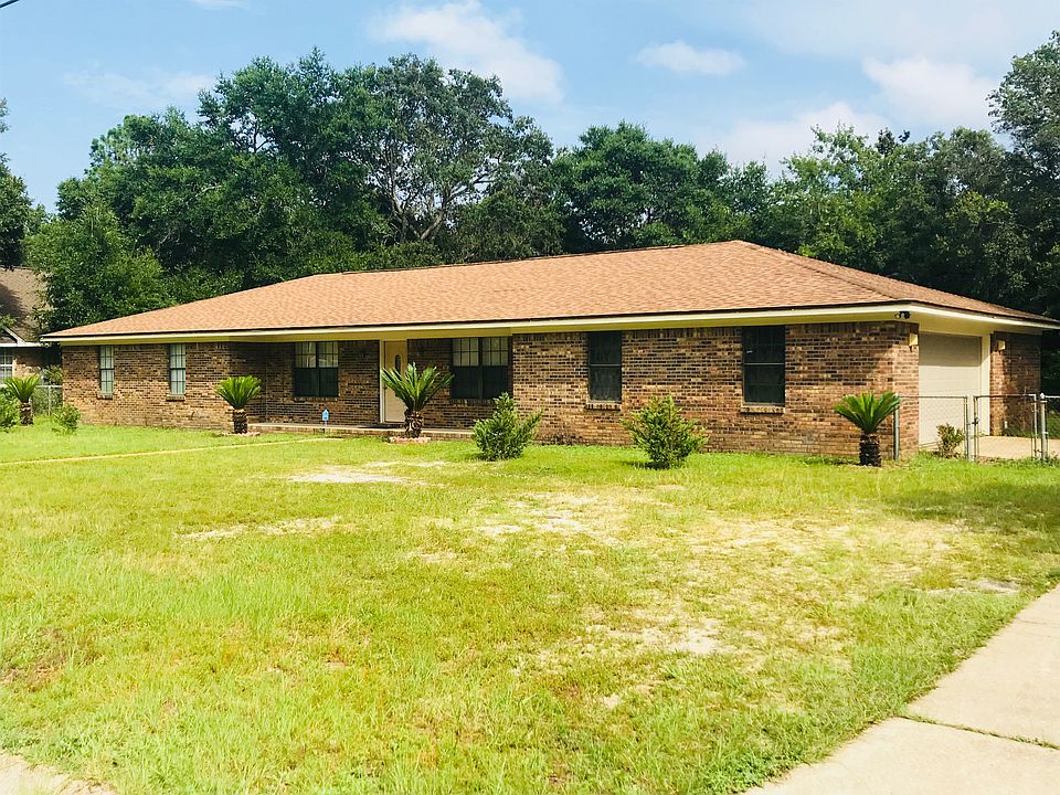 4 bedroom, 2.5 bath brick ranch style home on almost a half-acre lot in Southwest Pensacola. Large living area with fireplace, separate dining room, plus eat in kitchen overlooking great room. Tile floors and new carpet in all 4 bedrooms. Large enclosed Florida room. 2 car garage. Yard building (10ftx12ft) with electricity. Contact owner @ 850-293-3737