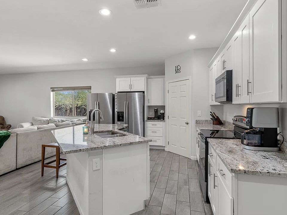 Newer - Low Maintenance Home, Granite Counter Tops, Stainless Steel Appliances, two Refrigerators, Large open floor plan, Carpeted Bedrooms and Tile main area floors. Epoxy 2 Car Garage, Private and quiet off street house. Large rear covered Patio. 1 Year Lease and 1 Month Rent as a Security Deposit