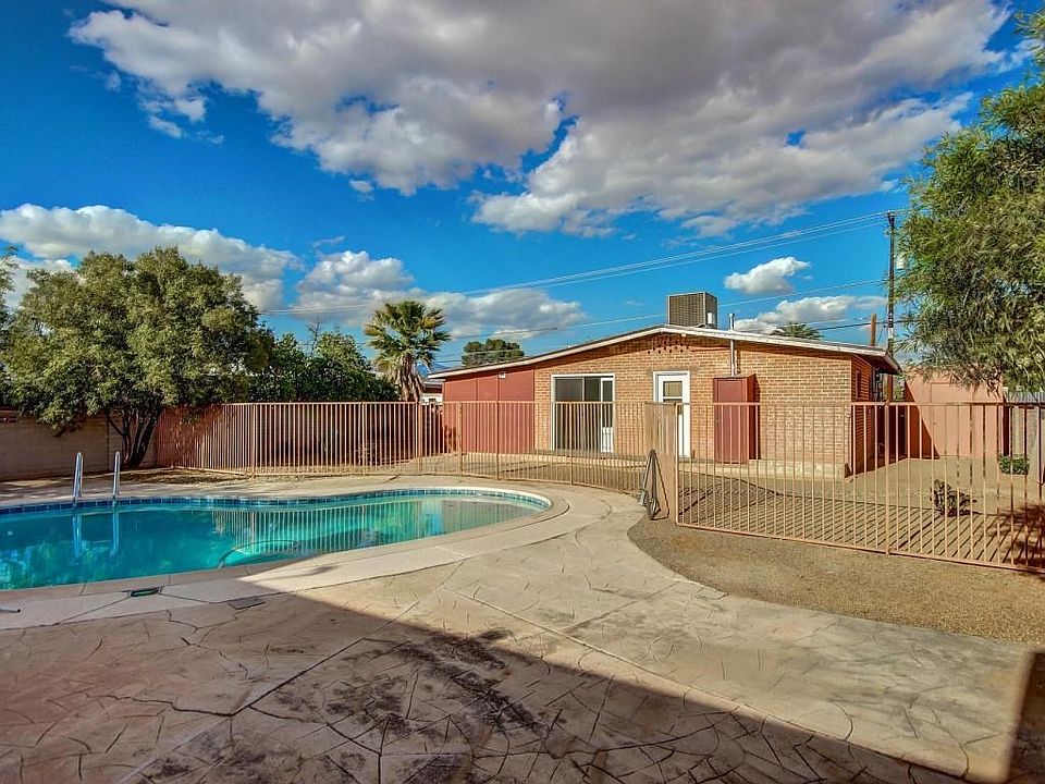 Close to TMC, shopping, dining, and more this is definitely your next home. It has been lovingly cared for and maintained and shows real pride of ownership. Plenty of parking out front with a carport and extra spaces. The front yard is easily cared for but looks great with decorative rocks and low-care plants. The tiled interior will keep you cool in the summer and the roomy kitchen features stainless steel appliances and plenty of counter space and cabinetry. Enjoy a meal at the breakfast bar or at a table in the nook next to the kitchen. Great space with two bedrooms and two bathrooms and more storage out back as well. Block fencing and beautiful but low care landscaping will make you feel like you're in a private oasis while you lounge poolside at your own pool! Won't last long!