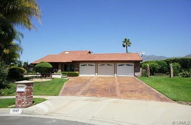Exquisite cul-de-sac home in the desirable area of North Upland. Gorgeous mountain views with a huge entertainers backyard. This magnificent home has been upgraded throughout its 2,980 Sq.ft of living space. Beautiful 4 bedrooms + 2.5 baths feature an open & bright floor plan. There is a wonderful kitchen that features coordinating appliances, granite counter tops and upgraded flooring. Double door entry, formal dining and living rooms. Extra large family room has a brick fireplace, wet bar and is very o pen with high ceilings with a lot of natural light. Spacious master suite with private sitting area and walk in closet. Huge lot of 36,300 sqft is truly an entertainers dream. Exterior features 2 separate covered patios, built in BBQ, landscaped yard, beautiful palms, mature fruit trees and 3 car garage with built in storage. To highlight it all, a sparkling salt water pool & spa great for weekend entertaining all summer long. Dont miss this one!!