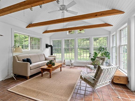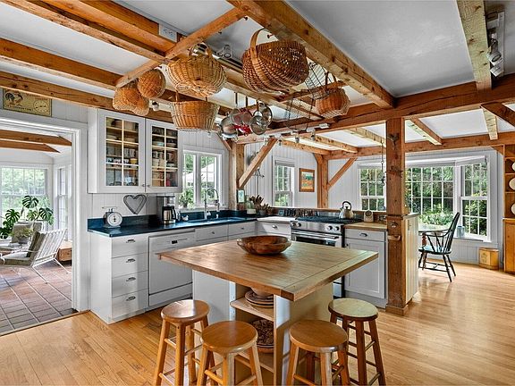 Discover the perfect blend of rustic elegance and modern comfort in this stunning post and beam home nestled on 90 pristine acres. As you approach via the winding driveway, you'll be captivated by the beautiful surroundings and unparalleled privacy. With extensive trails, a pond, and five outbuildings, including a barn, sugarhouse, and small seasonal cabin, this property offers a unique retreat just 45 minutes from Burlington and 18 minutes from St. Albans. The charming kitchen with soapstone counters, marble baking counter, and maple island is a cook's delight. A large, sun-drenched year-round sunroom is perfect for relaxing and entertaining. Extensive gardens grace the property, including a large vegetable garden and mature perennial beds. The barn sits across the road, ideal for equestrian pursuits or the current owner has used it as a woodworking studio. Private trails offer endless outdoor adventures, perfect for hiking, horseback riding, or snowshoeing. The home has western mountain views that enhance its tranquility. Outdoor living spaces include front and back porches and a stone patio, ideal for relaxation and entertaining. Functional spaces such as a large mudroom and a two-car garage provide added convenience. This wonderful country compound is a haven of peace and serenity, providing an idyllic lifestyle in a picturesque setting.
