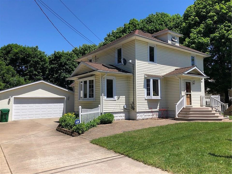 Old charm, updated beauty! Large 2 story home with walk up attic. Generous size bedrooms, wood floors in living room & second floor. Updates include roof, siding, windows, doors, kitchen, tankless hot water heater. First floor bedroom could be used as den/tv room. 24x28 garage built in 1998. Klein basement system & blown in insulation. Front & back stone patio. Two tier covered deck overlooking private, fenced yard. Great space for summer enjoyment! Easy commute to I90 & Bayfront! 1 yr warranty