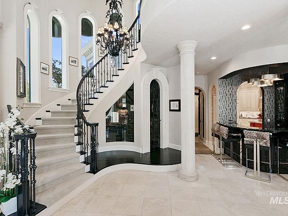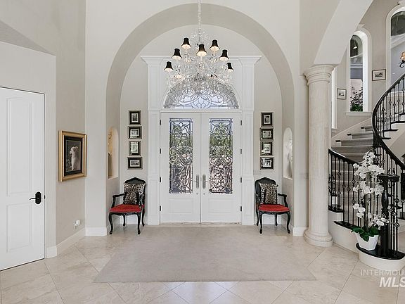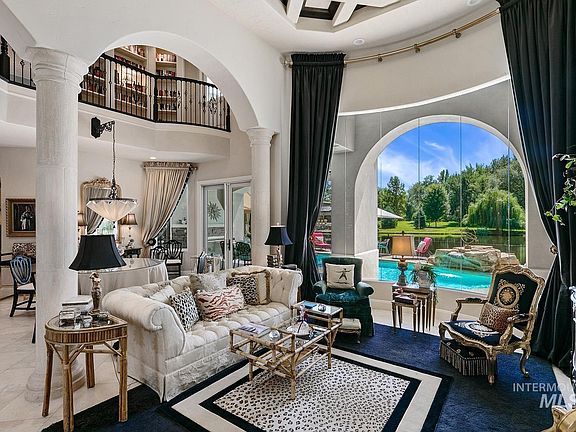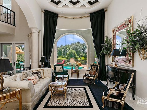 French architecture inspired living on the water in beautiful Eagle, Idaho. Just wait until you step foot into this stunning, waterfront home, just on the outskirts of Boise. Located in the renowned Rivers End Community, you will enjoy the lifestyle that would make even the best Gatsby lover envious. Enter the grand foyer with marble tile floors, soaring ceilings & windows overlooking the private pool & pond. Designed with the entertainer in mind, one can enjoy a beverage in the speak easy style Leopard Lounge or watch a film on the big screen in the luxurious home theater. The enormous French Country kitchen is a host's dream with custom cabinetry, trim, professional appliances & storage galore. Relax under the cabana by the pool and spa or BBQ in the outdoor kitchen. Handpainted wall paper, crystal chandeliers, custom woodworking, ensuite rooms & elegant craftsmanship will wow the most meticulous buyer. And only steps from the Boise Greenbelt, River and Downtown Eagle, this secluded home has it all.