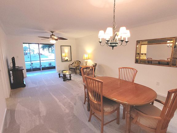 Beautiful ground floor two bedroom condo super close to the clubhouse with gorgeous golf course view. Condo is immaculate with newer kitchen appliances, new carpet, freshly painted with crown molding, knockdown on ceilings. Move right in! Murphy bed with bookcases in the second bedroom. One assigned parking spot 21B, directly in front of the front door! Unlimited golf, water, sewer, basic cable, building insurance are included in the low $499/month condo fee. No lease first 3 years of ownership. After that waiting period, 90 day minimum lease, maximum 217 days. Community Laundry, no washer/dryer allowed in the unit. There is a pending special assessment due in March which will be approximately $380 for this unit.