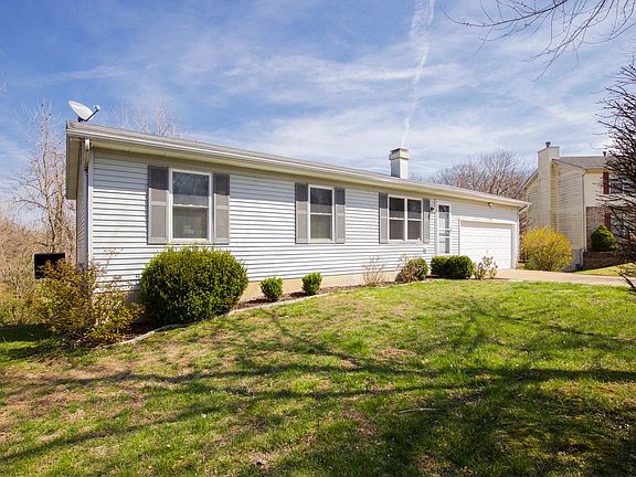 Charming ranch in Arnold. Convenient to I-55, home is in quiet subdivision close to Fox School District. OVER 1450 TOTAL LIVING SPACE with 3 beds and 2 full bath. Beautiful hardwood floors in the living room and toasty gas fireplace for those cold evenings. Hardwood floors continue through hall and bedrooms which also feature mirrored sliding doors and ceiling fans, 6 panel doors, neutral paint and brushed nickel lighting with accents. Kitchen-dining room combo with oak wood cabinets, recessed lighting, tiled floor and accessible sliding door to attached deck. Fenced yard,shed, and over sized two car garage with work bench. Great lower level entertainment area with laminate flooring, recessed lighting and bonus room for den or office. MOVE IN READY so pack up your car and check out your next home.