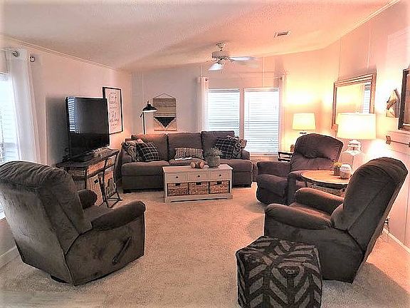 2 BR 2 BA 1100 SQ. FT. Home. You will love this cozy home with an open floor plan. Large eat in kitchen with updated soft close cabinets and flooring, Large closets with plenty of storage space, new windows in lanai in 2016, new carpet in 2016, new AC and furnace in 2016, new water heater in 2020. Tinted windows and beautiful landscaping. Lawn care is paid through November 2020. Furniture Negotiable. Double driveway with carport and golf cart garage.