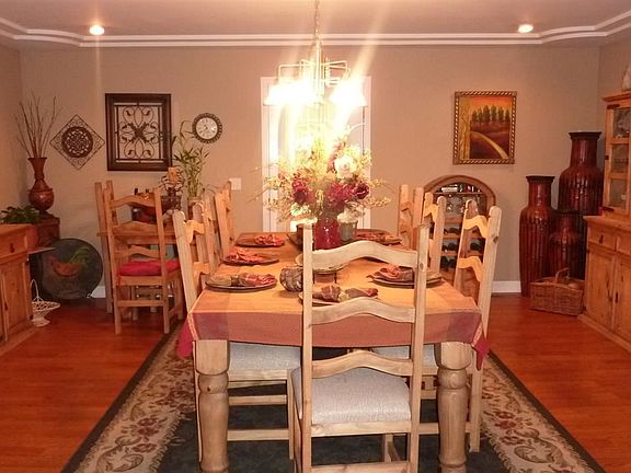 Back to nature in the city. You can have privacy and all the conveniences of living in town with this house and it's mostly wooded lot. Creek at the back of the house has a wooden bridge to cross over into the woods. Beautiful two tier deck. One area is covered and the open area is definitely entertaining size. The interior is spacious with trey ceilings, recessed lights, crown moulding, and a coffered ceiling in the kitchen. There is a huge dining room, that could be used as a rec room. Don't miss viewing this welcoming property!