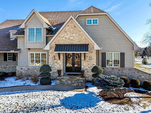 Welcome to this spectacular move-in ready 1.5-story home, situated on over an acre of extensively landscaped grounds. As you enter, you’ll be greeted by a vaulted foyer, open to the formal dining room; it also accesses the office with built-in bookshelves, wood wainscoting, and sliders leading to a screened porch. The two-story great room features coffered ceilings, a cozy fireplace, and an appealing niche display area, creating an inviting atmosphere for both everyday living and entertaining. The gourmet kitchen appeals to the chef in all us, and includes granite counters, with large center island, refrigerator, range/oven, dishwasher, pantry, and a butler's pantry. The 12-foot beamed tongue-and-groove ceiling includes two sets of glass sliders open to the screened porch, plus deck, and private aggregate concrete patio. The first-floor master suite offers a spacious walk-in closet and a luxurious en-suite bath with double vanities, a soaking tub, and separate shower. Upstairs, all bedrooms have private bath access, providing ultimate comfort and privacy. The finished basement is an entertainer's paradise, featuring a huge rec room with a wet bar, fireplace, and pool table. Additional highlights include a separate craft room with a sink, a theater room with furniture and a large TV screen, and sliders to a patio with a pergola. Plus, enjoy the convenience of an equipped exercise room, complete with a Nautilus weight gym and upright cycle. This home truly has it all!