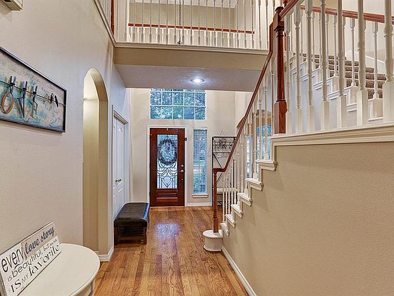 DID NOT FLOOD EVEN DURING HARVEY! New updates includes 2yr old roof, carpet, paint, one automation ecobee thermostat with 3 room sensors, etc. This spacious two story home is immaculate and features a 2 story entry, elegant formal dining, romantic master suite w/executive master bath, study down or 4th bedroom, living room w/gas log fireplace, window seats in breakfast room, sunroom off of island kitchen, walk Âin pantry, large utility room, game room up, 2 inch blinds throughout, wood floors in living/dining/entry, gorgeous backyard w/slate patio, and sprinkler & systems.