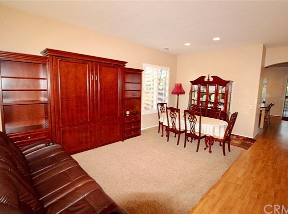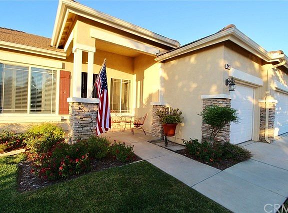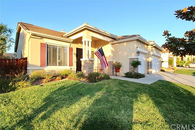 Rare, Single-Story, Beauty found in the highly sought after Autumn Ridge gated community of Orangecrest. This home features 3 bedrooms and 2 full bathrooms. Walk into the formal living room/dining room and you're greeted by the laminate flooring and upgraded carpet. Custom granite countertops with a custom tile backsplash accent the kitchen. The center island features a large undermount sink with a stainless faucet. Recessed lighting throughout the home, partial shutters, window blinds and ceiling fans in each room which keeps the home cool day and night. The great room is large enough to host your family gatherings around the beautiful fireplace. Find your way into the master suite that includes an incredible view of the private backyard, dual vanity sinks and both a walk-in shower and bathtub. There are 2 floor safes built into the master closet for your valuable keepsakes. You will be amazed with the size of the master walk-in closet. Down the hallway are the 2 large guest rooms. This home features a whole house vacuum system. As you make your way to the large 3-car garage, you come across the laundry room with custom shelving to handle your heaviest loads. The backyard features a real wood patio cover. Automatic sprinklers keep the serene landscape blooming all year long. Walking distance to schools, shopping, community center and churches. Great access to the 215/60/91 freeways. Must See! Schedule your appointment soon!