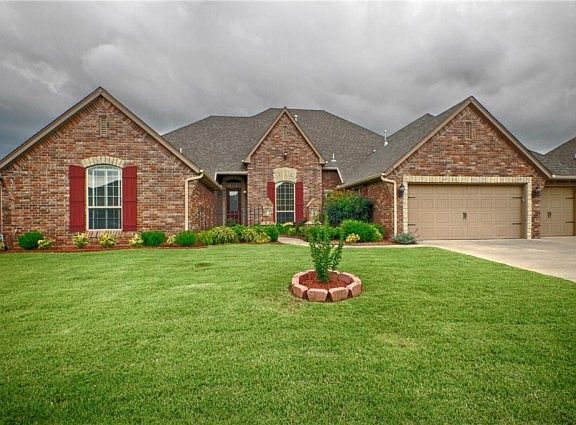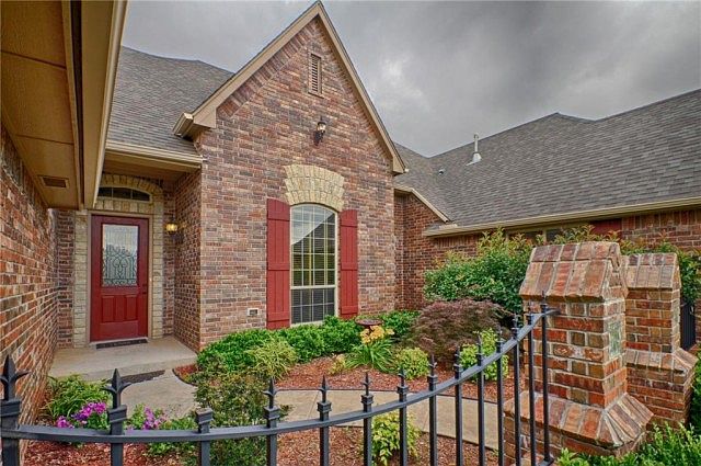 Beautiful one story home perfect for entertaining or family gatherings. Rooms are all spacious, tall ceilings, gorgeous wood floors, abundant storage including large walk in closets, separate office with built ins, large bonus/theater room and great outdoor living space with huge yard and storage building. You will love the kitchen with walk in pantry, granite counter tops, gas range and center island. Wonderful master suite with walk in shower and large spa tub. This home shows like new and is located on a cul de sac street. Edmond Schools!