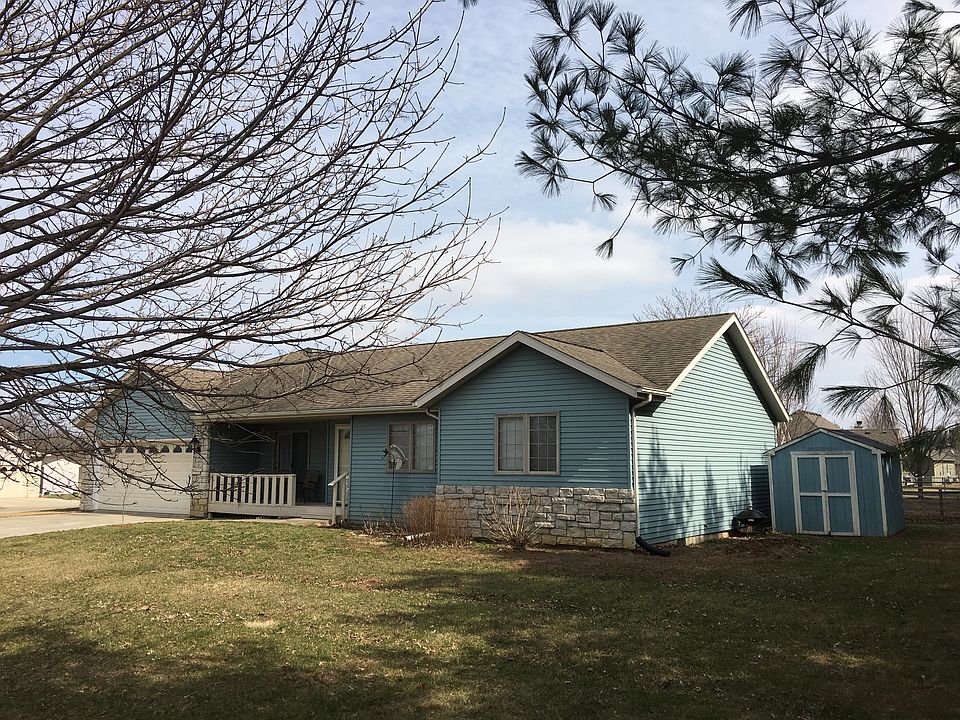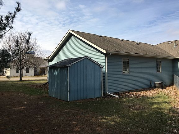 GREAT PRICE!! Super neat 3 Bedroom, 2 Bath Duplex condo on a nice corner lot lined with mature pine trees. Open Living/Dining/Kitchen area opens to sunny front deck. Kitchen has all appliances & pantry. 2 year old light wood laminate floors throughout... except baths & laundry. Good size laundry/utility room leads to 2 car garage. Fresh, neutral paint too. Includes storage shed too. Bright & cheery interior. Floor plan & corner lot setup looks & feels like a single family home.....Move right in & enjoy maintenance free living.