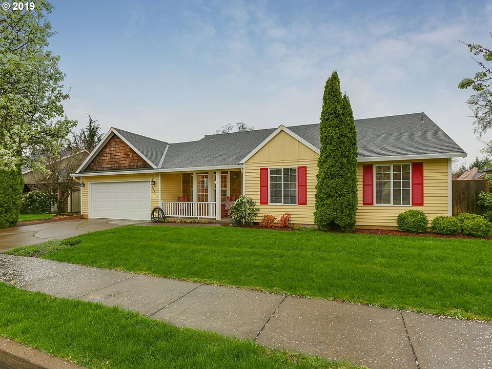 Immaculate one level home! Tons of curb appeal. Light and bright vaulted living room w/ cozy double sided fireplace into formal dining rm. Kitchen with bayed window eating nook. Master suite w/ walk in closet and private bathroom. Front bedroom with french doors could be office/den. Laundry room w/ sink and extra storage. Lovely large fenced yard backyard with patio sitting area. Double car garage.