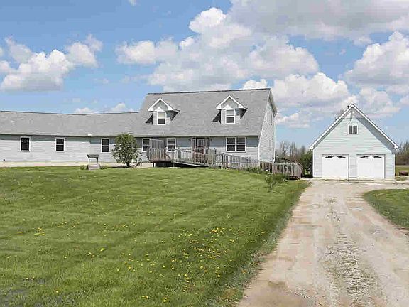 Beautiful 3148 sq ft, 5 bedroom and 3 full bath home on 5 acres in Milan Schools. Large open dining room and kitchen with french doors leading to your back deck and pool. 2 bedrooms on the main floor including the master suite with huge walk-in closet with built-ins and 20'x16' tiled master bath complete with oversized jetted tub and 6'x6' walk-in shower. Main floor laundry room. 3 bedrooms and a full bathroom upstairs. Attached 32'x30' drywalled garage with extra tall doors and detached 30'x25' 2 story garage. Partially finished basement with daylight windows and access door to the outside.