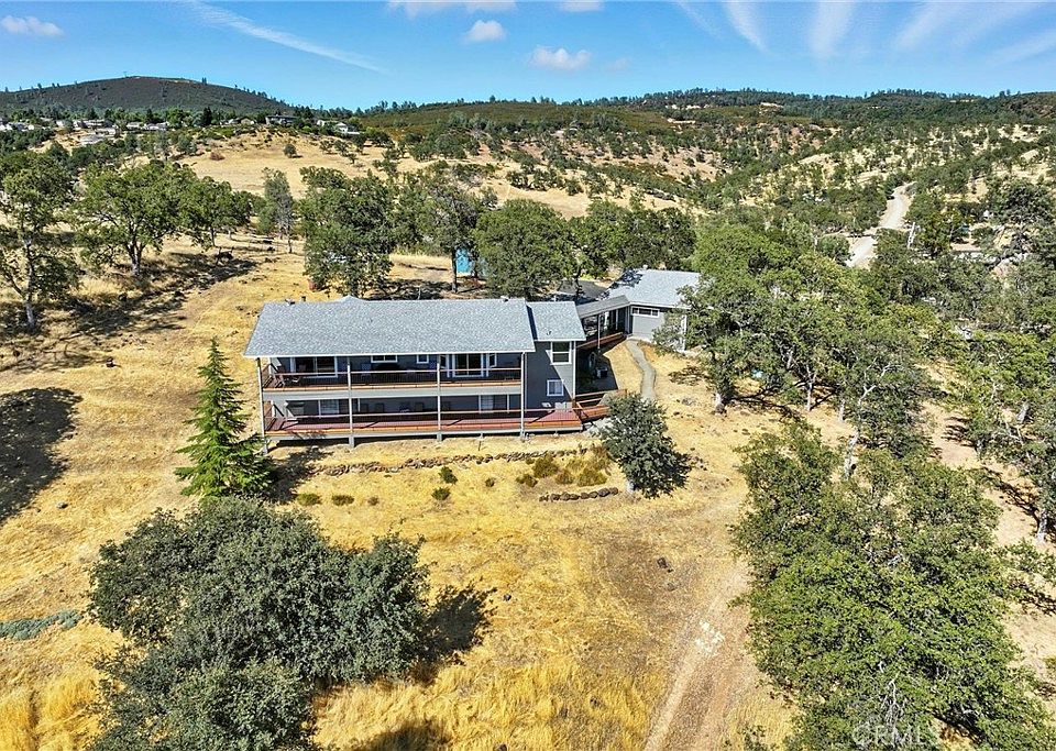 Expansive Rancho Retreat with Sweeping Views & Modern Upgrades! Set on over 5+ acres in the desirable HVL Ranchos—with no HOA dues!—this beautifully remodeled home showcases unobstructed views of the valley, Mt. St. Helena, and the Hidden Valley Lake golf course pond. With modern upgrades, thoughtful design, and versatile spaces, it’s a home that blends elegance with everyday comfort. The open great room flows into a step-down living area anchored by a wood-burning fireplace with custom stone surround. The chef’s kitchen features abundant wood cabinetry, quartz countertops, built-in oven and microwave, five-burner cooktop, and breathtaking views framed by the kitchen window. Luxury vinyl plank flooring extends throughout the home, complemented by brand-new carpet on the staircase. Just down the hall are two bedrooms and two remodeled baths. The hall bath offers dual sinks, granite slab counters, upgraded cabinetry with linen storage, and a large tub/shower combo. The primary suite is a spa-like retreat with radiant flooring, soaking tub beneath a panoramic window, oversized custom tile shower with specialty coated glass, privacy water closet, quartz dual-sink vanity, updated lighting, and a massive walk-in closet. Also upstairs, the versatile utility room doubles as an office and laundry area with storage closets, utility sink, and breezeway access to the oversized 2-car garage with workshop. Downstairs are two additional rooms: a third bedroom with en suite bath and private deck access, plus a bonus room that is an entertainer's dream complete with custom bar, sink, cabinetry, and slider to the back deck. Both levels open to full-length covered decks, offering seamless indoor/outdoor living and panoramic vistas. In addition to the two-car garage plus workshop, there are two attached carports, a detached RV carport, animal pens, garden areas, and plenty of space for livestock, orchards, or future expansion. Additional upgrades include an attic fan that circulates woodstove heat, a water softener, a generator at the well, and more. A rare combination of elegance, versatility, and wide-open views—this Rancho retreat is truly one of a kind!